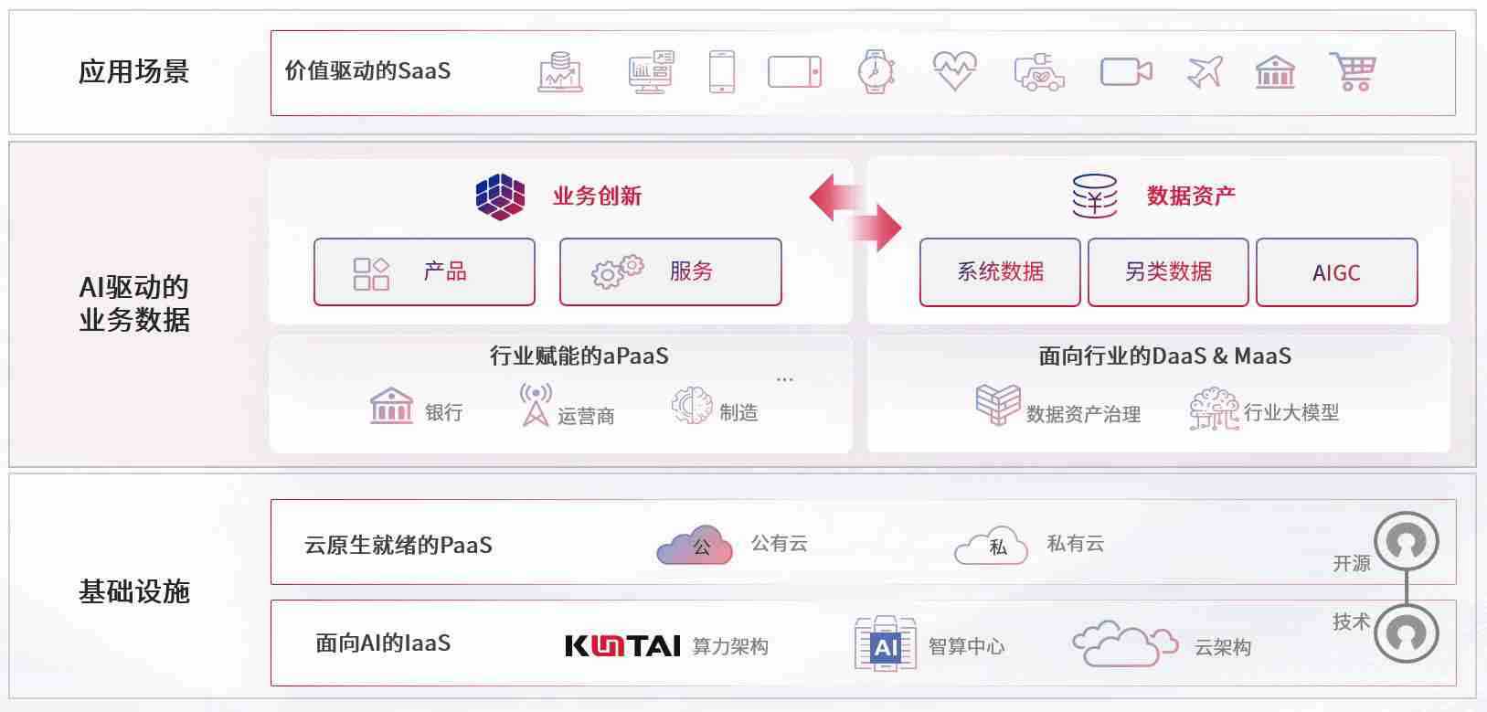 数字时代,,,,围绕企业数字化转型的关键要素,,,,z6人生就是博数码开创性的提出数云融合战略和技术体系框架,,着力在云原生、、、数字原生、、AI原生和信创产业上架构产品和服务能力,,为处在不同数字化转型阶段的快消零售、、、汽车、、金融、、医疗、、政企、、教育、、、、运营商等行业客户提供泛在的敏捷IT能力和融合的数据驱动能力,,构建跨界融合创新的数字业务场景和新业务模式,,,,助力企业级客户建立面向未来的核心能力和竞争优势,,,,全面推动社会的数字化、、智能化转型升级。。